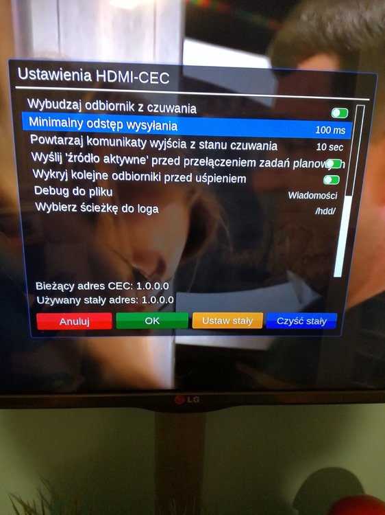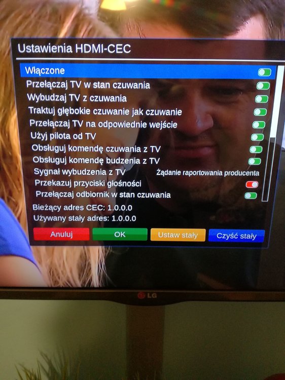 Z jednej strony jest Vu+ zero w wersji Graterlia Premium z drugiej TV LG [32LA620S-ZA] obsługujący SIMPLINK, który nawet znalazł mi tuner. Jedyne na czym mi zależy to, żeby pilot tunera włączał i wyłączał mi telewizor. Reszta i tak obsługiwana z pilota Vu+. Na chwilę obecną działa mi włączanie tunera i TV z przycisku power na pilocie VU+. Natomiast wyłączanie działa mi na VU+ ale nie wyłącza telewizora (nie usypia). Natomiast opcja wyłączania działa mi na te dwa urządzenia z pilota TV. Co zrobić aby pilot VU+ usypiał mi również telewizor. W załączeniu zdjęcia z konfiguracji dodatku.